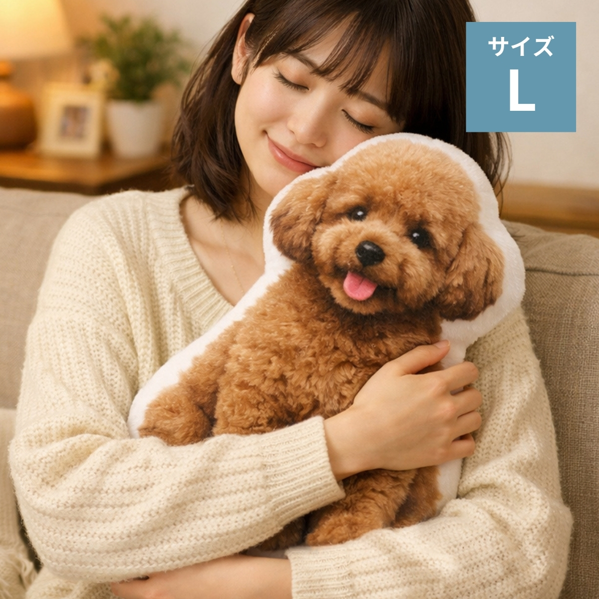犬猫そのままクッションLサイズ(ふわふわ起毛生地)