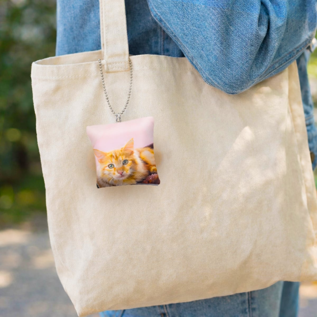 小さいサイズのクッションですが、このままキーホルダーのように、チャームとしてお使いいただけます。