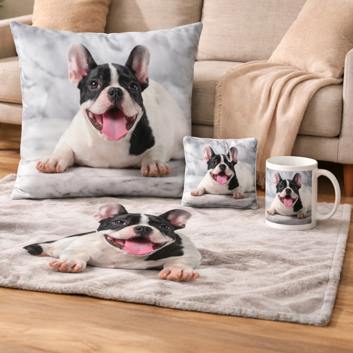 ・スクエアクッションM+チャームスクエア+ブランケットM+マグ