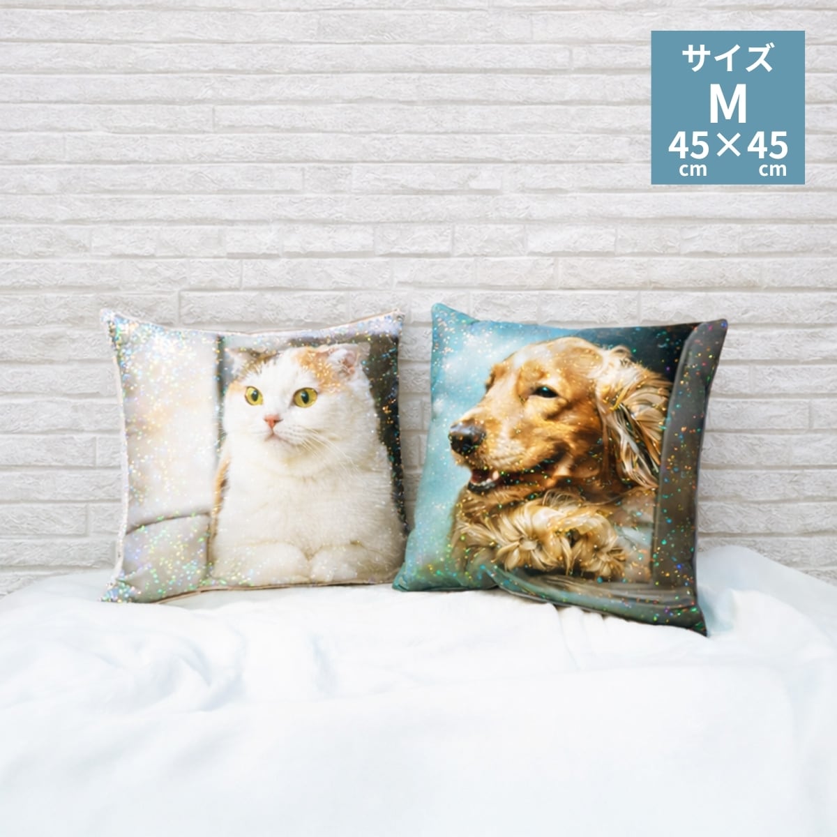 【おもいで】キラキラクッション スクエアM(裏面:ふわふわ起毛生地)
