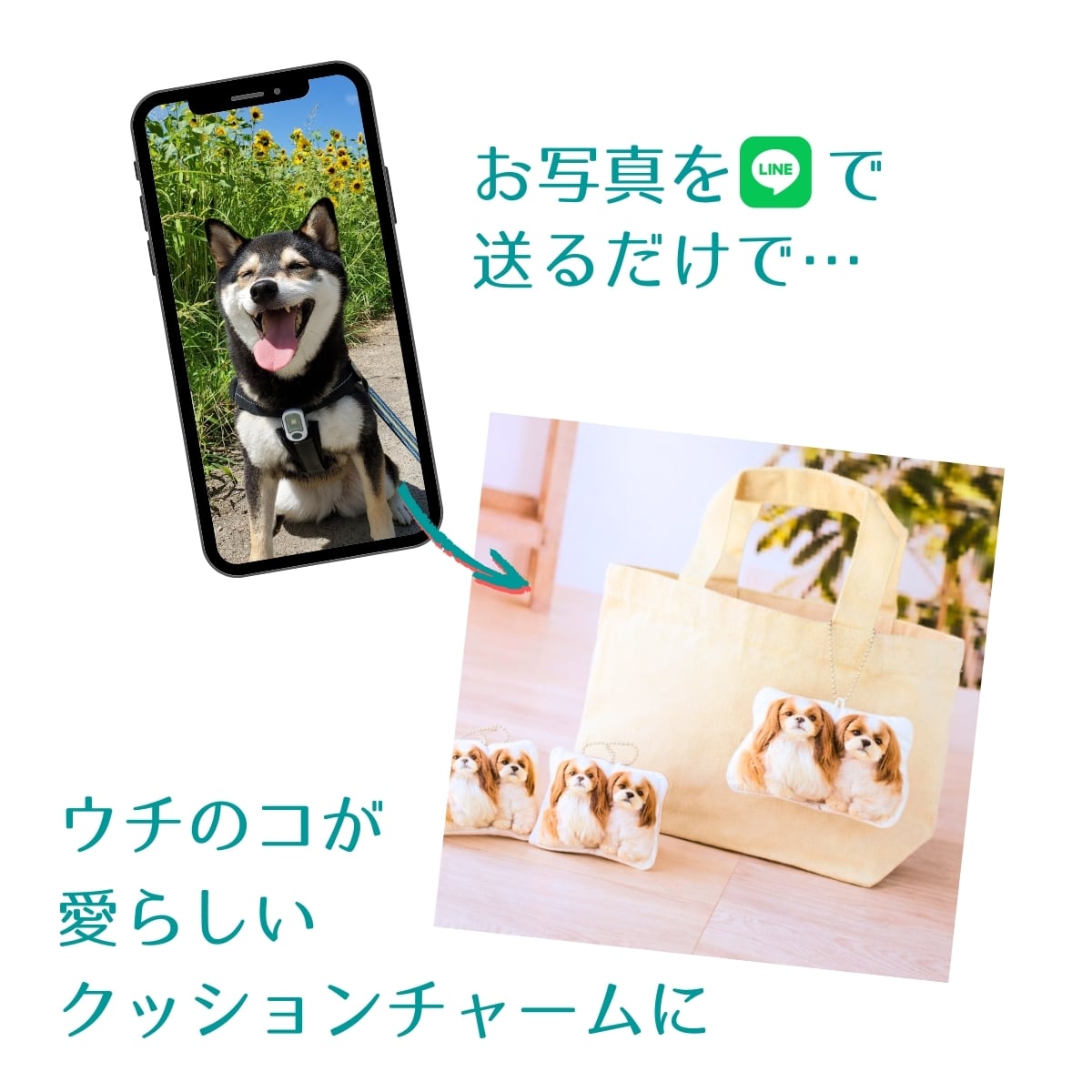 うちの子の可愛さを、さり気なくアピールできる【そのままチャーム】クッション。