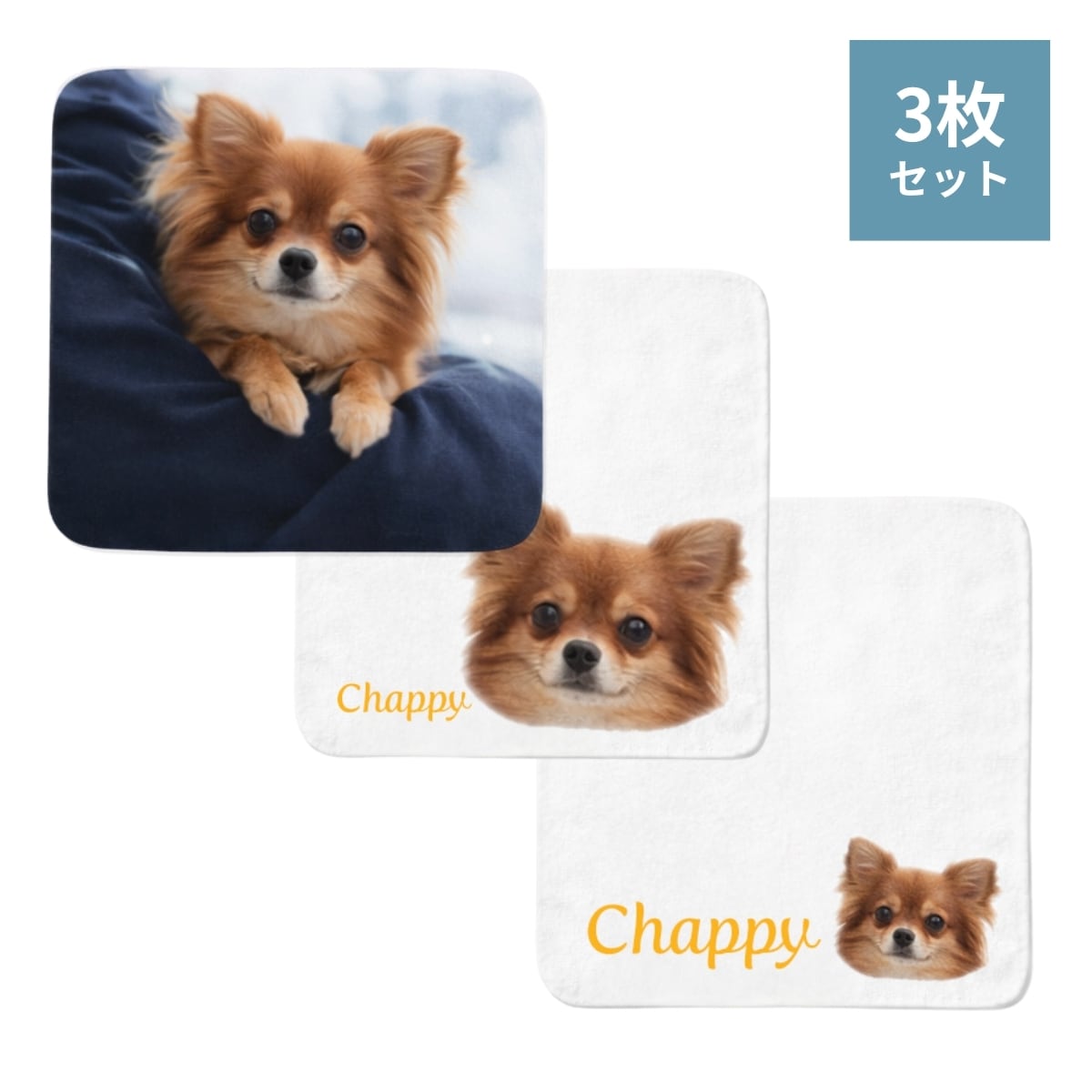 【Pets】ハンドタオル3枚セット(全面プリント1枚+ワンポイント2枚)