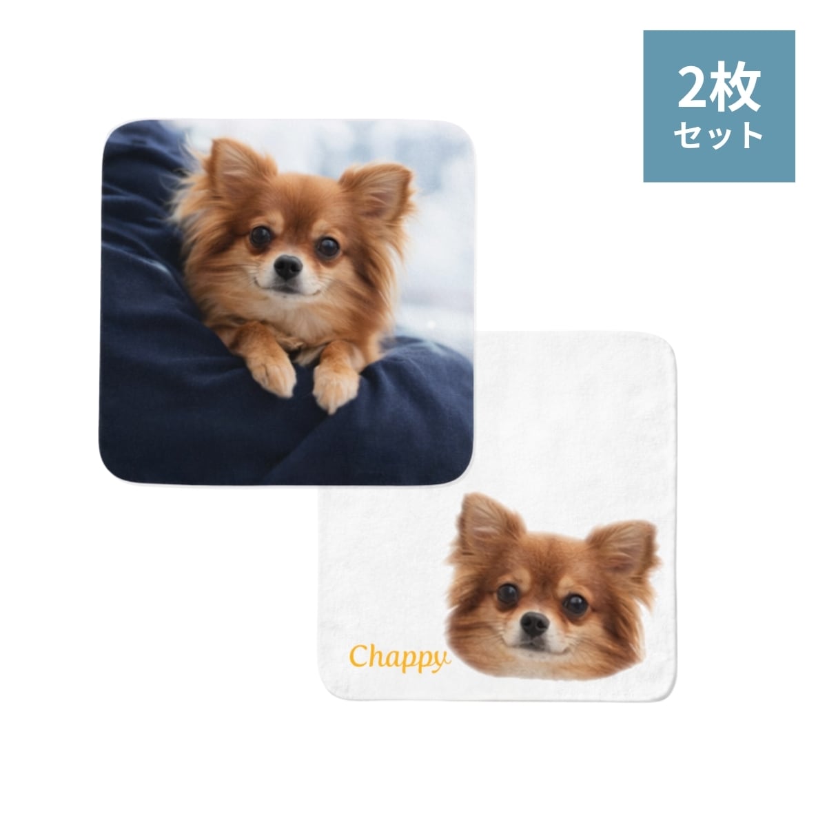 【Pets】ハンドタオル2枚セット(全面プリント1枚+ワンポイント1枚)