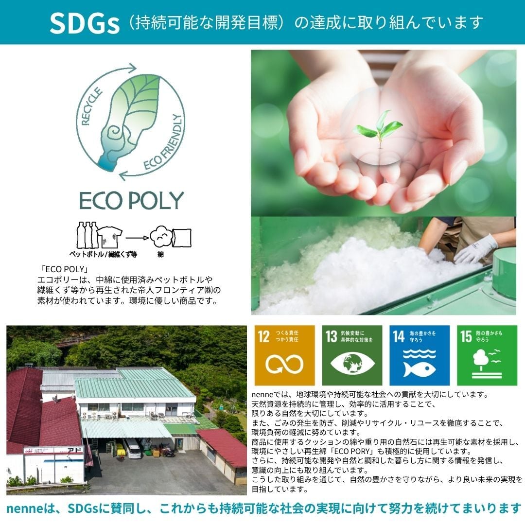 また、ふっくらと包み込む、やわらかな上質生地で、長く愛用できる、丁寧な国内生産の仕立てになっております。