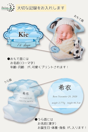 生まれた時の体重がそのままクッションに!名前、誕生日、メッセージも入れられる!